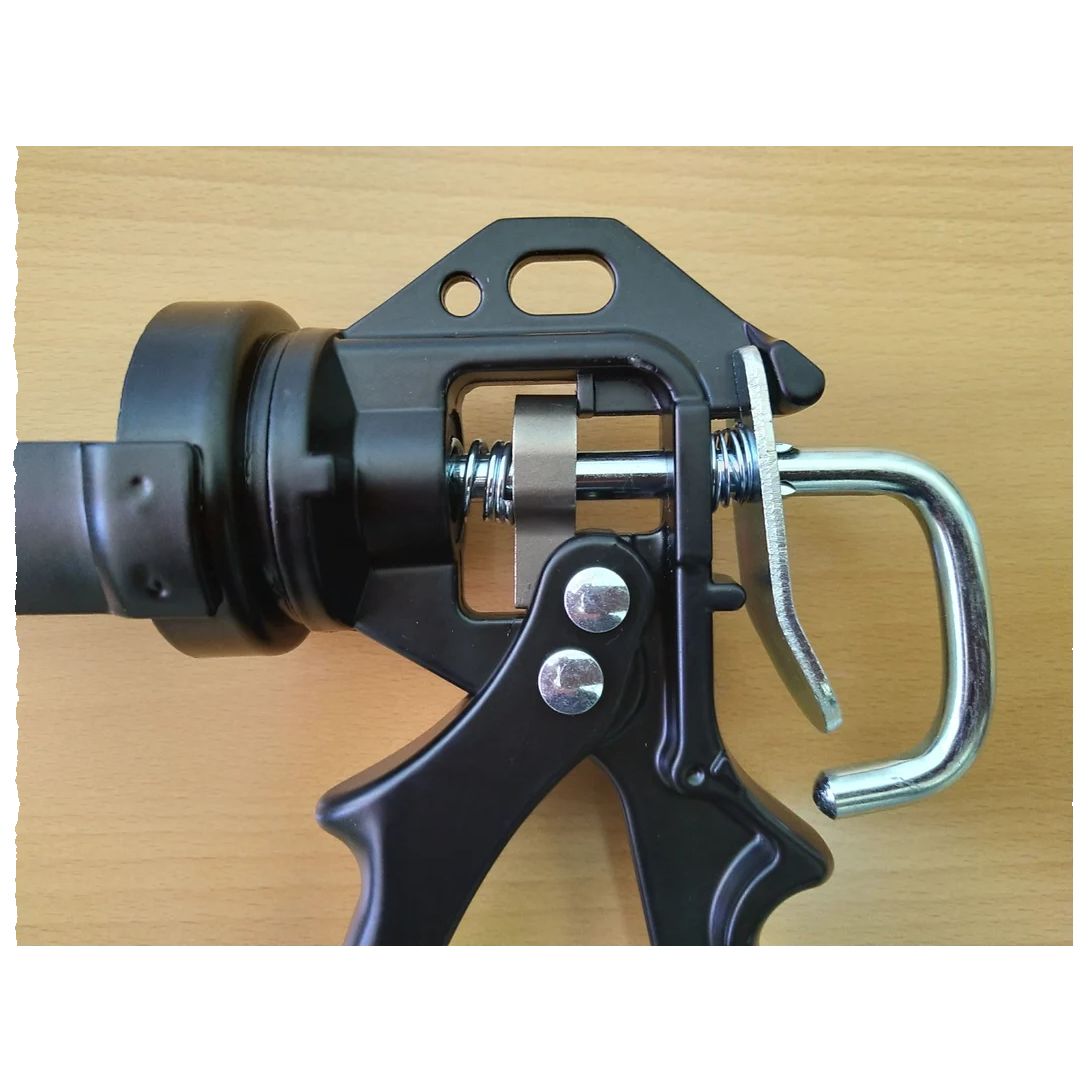 Полуоткрытая конструкция облегчает и значительно упрощает замену тубы с герметиком.