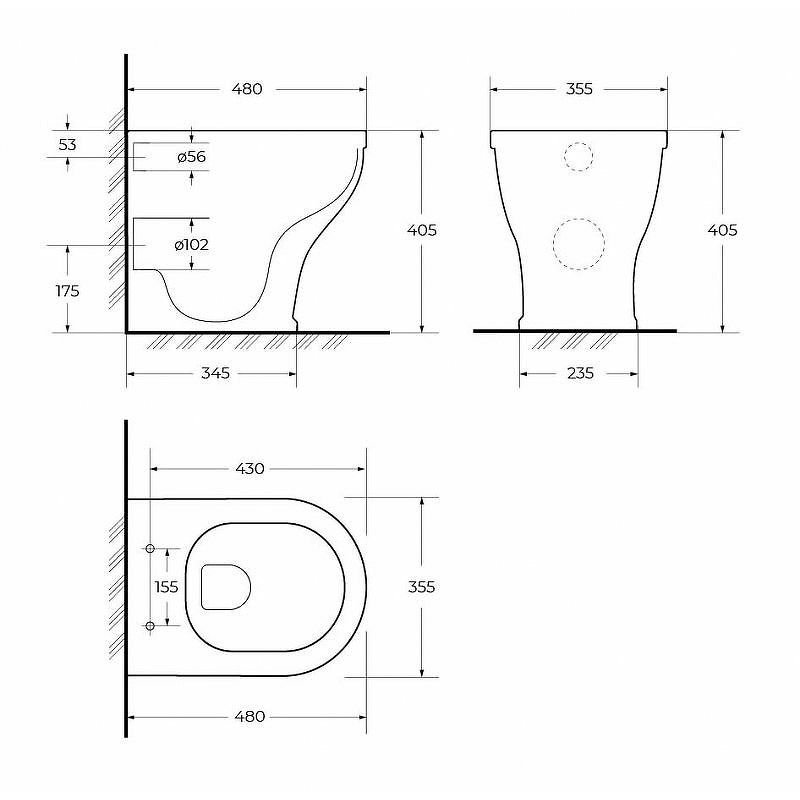 Чаша унитаза приставного безободкового Cezares (Цезарис) Giubileo, полное примыкание P-trap, без крышки и сидушки CZR-265-CBR