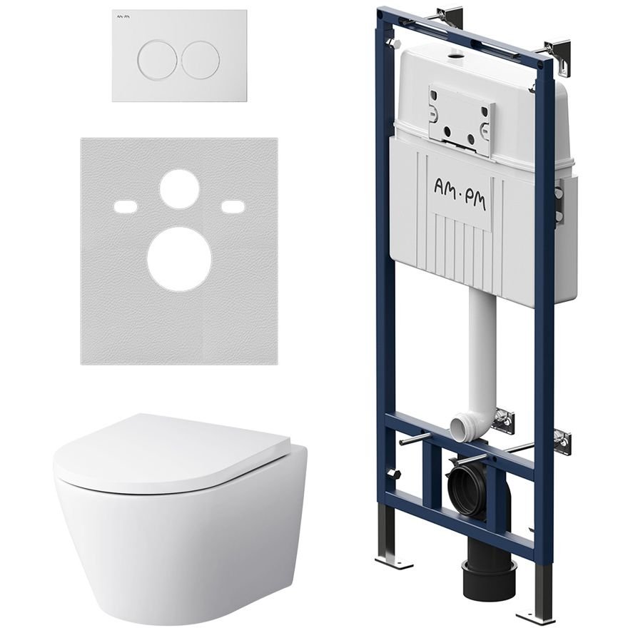 Инсталляция AM.PM (АМ.ПМ) MasterFit Sense, глянцевый белый, с подвесным унитазом FlashClean, сиденье в комплекте, синий, IS100101.741701