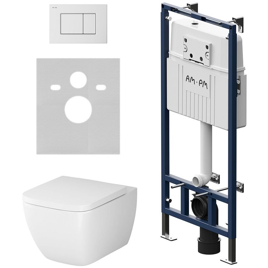 Инсталляция Am.Pm (Ам.Пм) с унитазом MasterFit Gem глянцевый белый, с сиденьем, клавиша, IS100201.901701