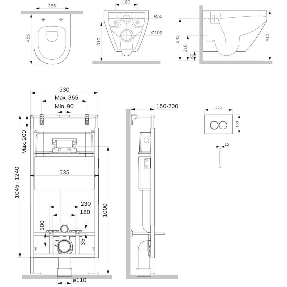 Полностью готовый к установке комплект: система инсталляции с клавишей подвесной унитаз с сиденьем включающий все необходимые крепления патрубки звукоизолирующую прокладку. Экономия пространства благодаря узкому бачку – 120 мм глубиной. Заливной клапан с низким уровнем шума - Класс II согласно европейского стандарта EN 14124. Функция SetUp : Гибкая система крепежа – универсальность и эффективность установочного процесса. Гибко обходит вертикальные и горизонтальные трубы. Высокая прочность и износостойкость. Выдерживает нагрузку до 400 кг. Подходит для унитазов любых размеров. Армированный шланг подачи воды двойная прокладка слива и подачи воды. В комплекте механическая двухрежимная клавиша из ABS пластика в цвете черный матовый. Подключение воды сзади сверху. Выверенный геометрический дизайн унитаза Spirit V2.0 - идеально ровные поверхности с четкими гранями - отмечен премиями iF Design и Good Design. FlashClean - новое поколение безободковых унитазов без использования пластика: 100% гигиеничности 0% брызг. Компактное дизайнерское решение: идеально впишется в санузел любого размера благодаря проекции 49 см. Полностью скрытые крепления и скрытый фановый выход обеспечат эстетическую чистоту дизайна и лёгкость в уходе за керамикой. В комплекте быстросъемное сиденье из дюропласта с механизмом плавного закрывания. Материал сиденья дюропласт устойчивый к появлению царапин в сочетании с креплениями из нержавеющей гарантируют долговечность сиденья. Механизм плавного опускания рассчитанный на 100 000 закрываний и быстрого снятия - комфорт в использовании и легкость в уходе за сиденьем и керамикой.