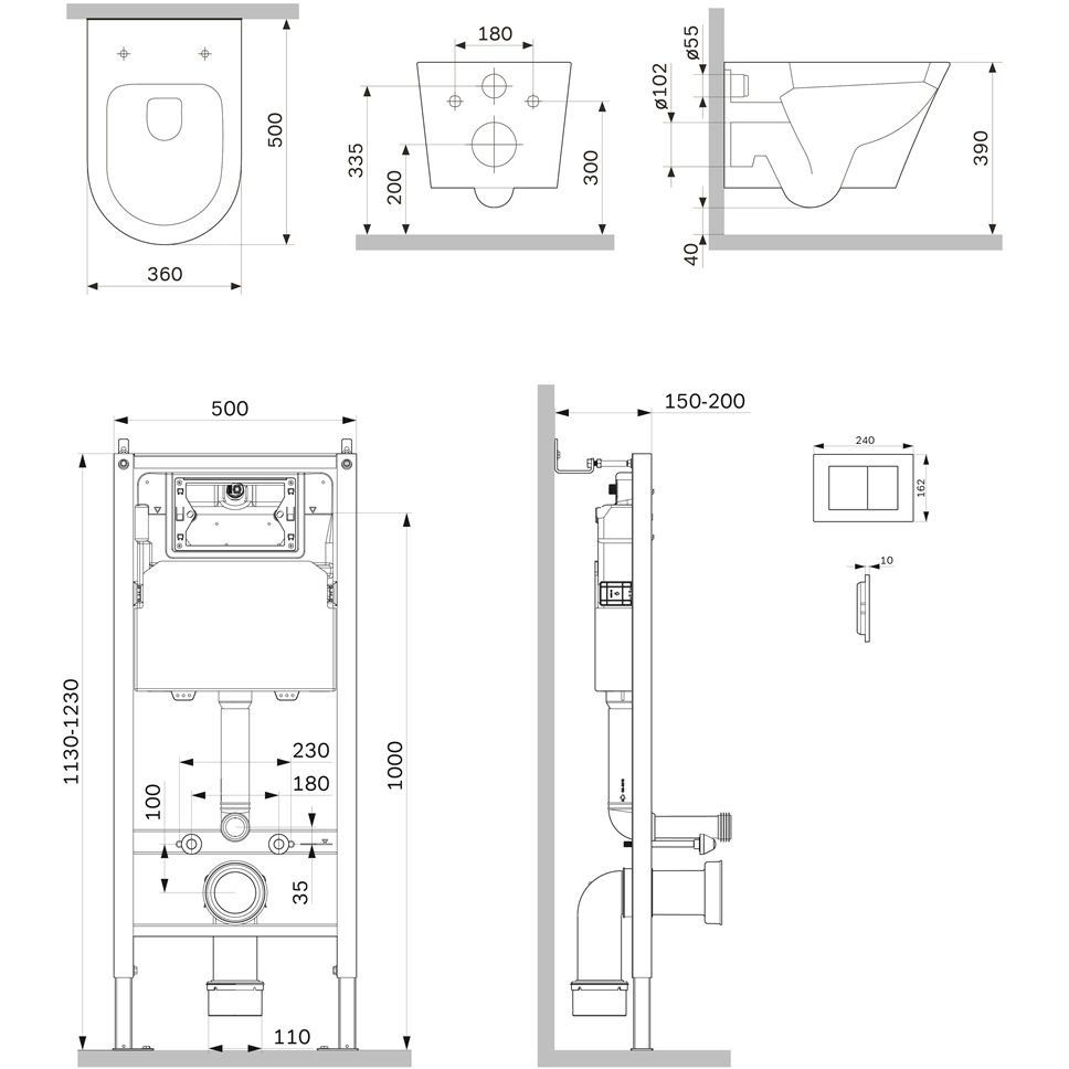 Полностью готовый к установке комплект: система инсталляции с клавишей подвесной унитаз с сиденьем включающий все необходимые крепления патрубки звукоизолирующую прокладку. Экономия пространства благодаря узкому бачку – 120 мм глубиной. Заливной клапан с низким уровнем шума - Класс II согласно европейского стандарта EN 14124. Выдерживает нагрузку до 400 кг. Подходит для унитазов любых размеров. Высокая прочность и износостойкость. Увеличенная толщина профиля армированный шланг подачи воды двойная прокладки слива и подачи воды. В комплекте механическая двухрежимная клавиша из ABS пластика в цвете черный матовый. Подключение воды сзади сверху. Коническая чаша унитаза Sense Flashclean со строгими выверенными формами - традиционный немецкий дизайн созданный в собственной студии AM.PM Design. FlashClean - новое поколение безободковых унитазов без использования пластика: 100% гигиеничности 0% брызг. Безупречная поверхность: изготовлен из стекловидного фарфора самого гигиеничного и влагостойкого материала. Компактное дизайнерское решение: идеально впишется в санузел любого размера благодаря проекции 50 см. В комплекте быстросъемное сиденье из дюропласта с механизмом плавного закрывания. Материал сиденья дюропласт устойчивый к появлению царапин в сочетании с креплениями из нержавеющей гарантируют долговечность сиденья. Актуальный дизайн сиденья slim wrap-over с однокнопочным механизмом быстрого снятия.