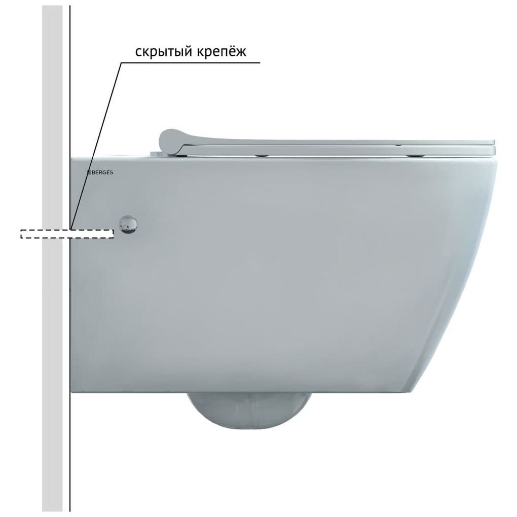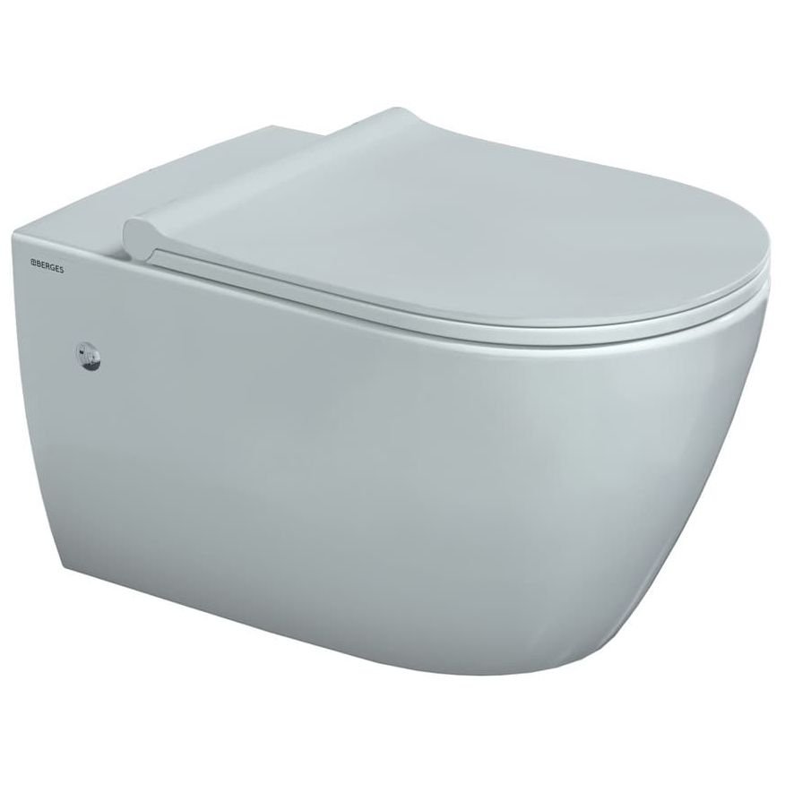 Унитаз подвесной BERGES (БЕРГЕС) Mascon Rimless 57 см, сиденье дюропласт Toma Slim SO, микролифт, быстросъем белый (082128)