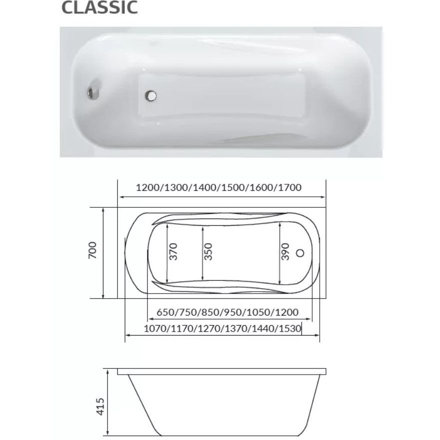 Ванна акриловая прямоугольная 1MarKa (1Марка) Classic A 1600х700 белый (01кл1670 А)