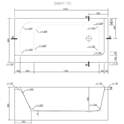 Ванна акриловая прямоугольная Cersanit (Церсанит) Smart 170х80 белая (63351), (без монтажного комплекта/ножек)