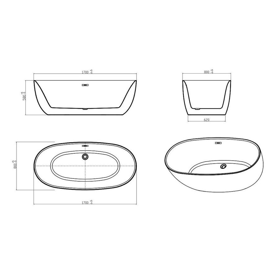 Ванна акриловая Vincea (Винчея) VBT-205, 1700х800х580, цвет белый, слив-перелив в комплекте, хром, (без монтажного комплекта/ножек)