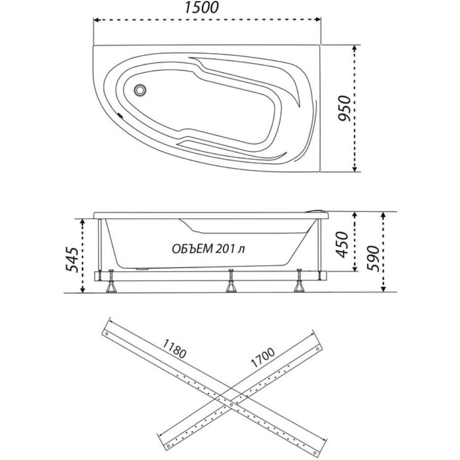 Ванна обрезная асимметричная Тритон (Triton) акриловая Madrid 1500х950х590 мм (Щ0000045643) (без монтажного комплекта/ножек)