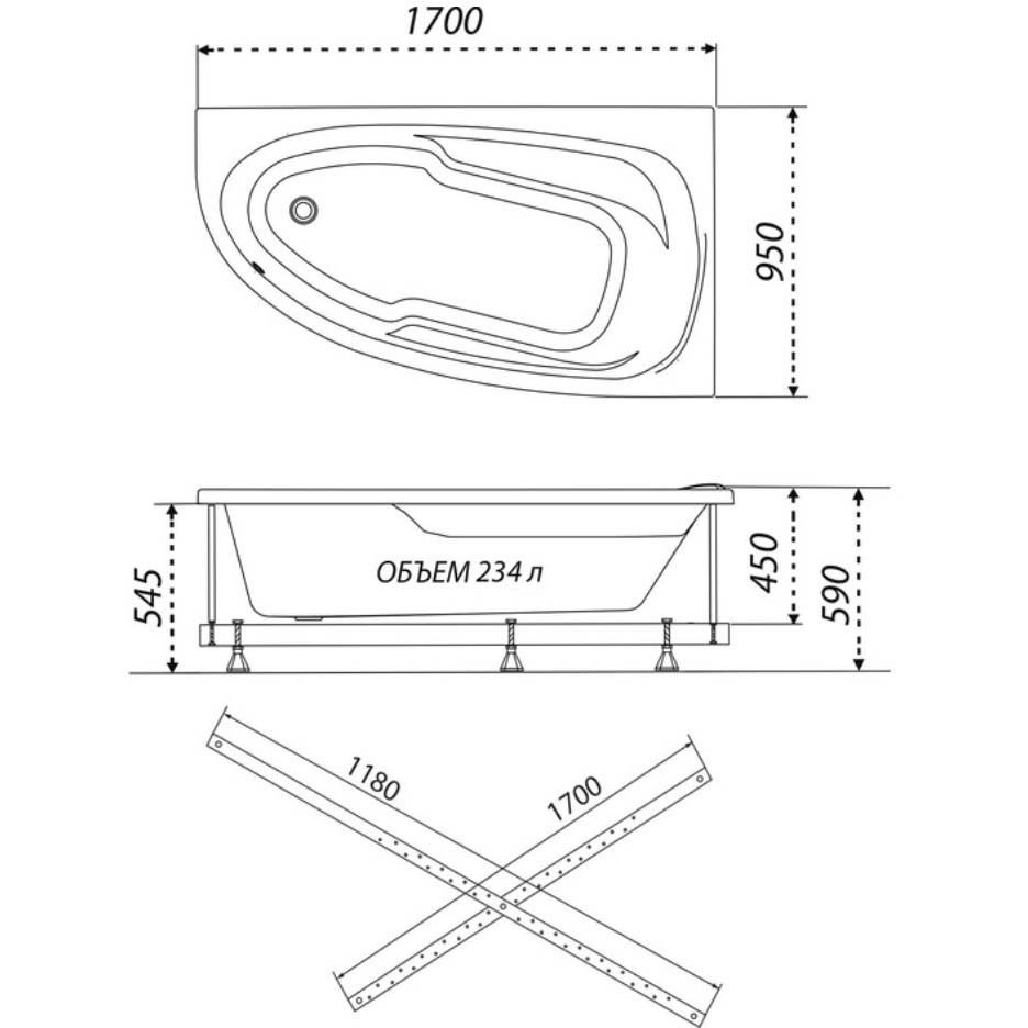 Ванна обрезная асимметричная Тритон (Triton) акриловая Madrid 1700х950х590 мм (Щ0000045645) (без монтажного комплекта/ножек)
