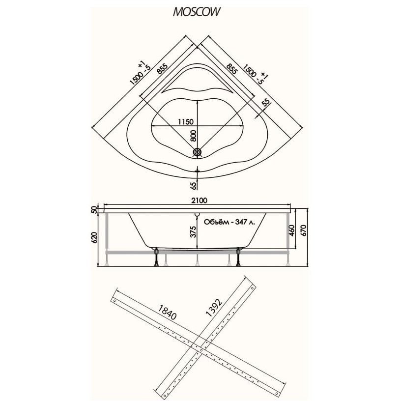 Ванна обрезная угловая 1ACReal (1Ас Реал) акриловая Moscow 1500х650х1500 мм (Щ0000028759), (без монтажного комплекта/ножек)