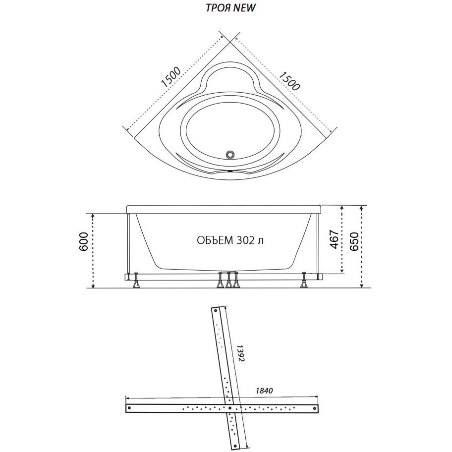 Ванна обрезная угловая Тритон (Triton) акриловая Троя 1500х1500х650 мм (Щ0000045648) , (без монтажного комплекта/ножек)