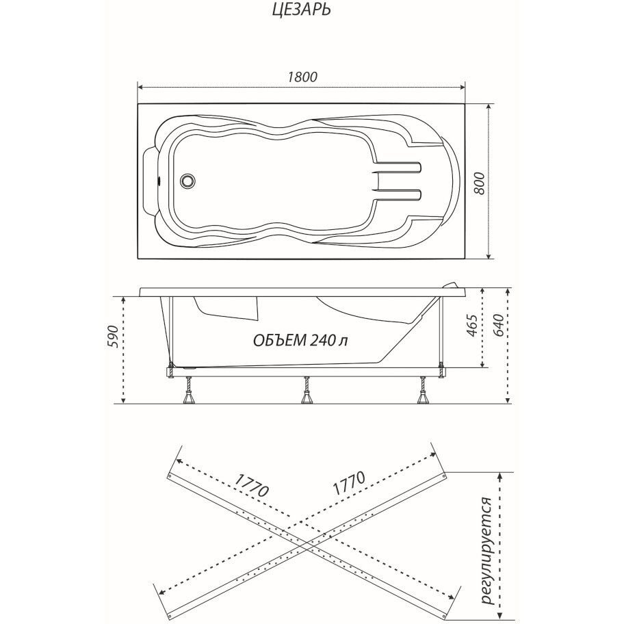 Ванна прямоугольная Тритон (Triton) акриловая Цезарь Экстра 1800х800х640 мм (Н0000099993) , (без монтажного комплекта/ножек)