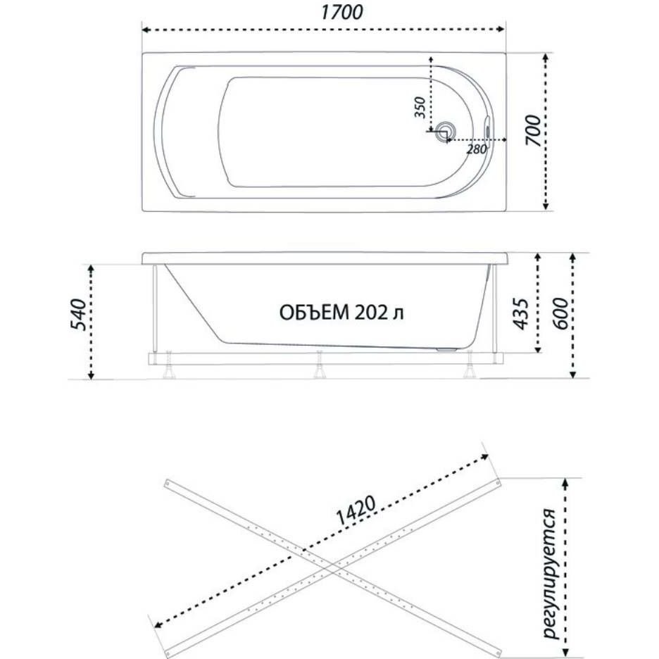 Ванна прямоугольная Тритон (Triton) акриловая Дюна 1700х700х600 мм (Щ0000046663) (на Х-каркасе)