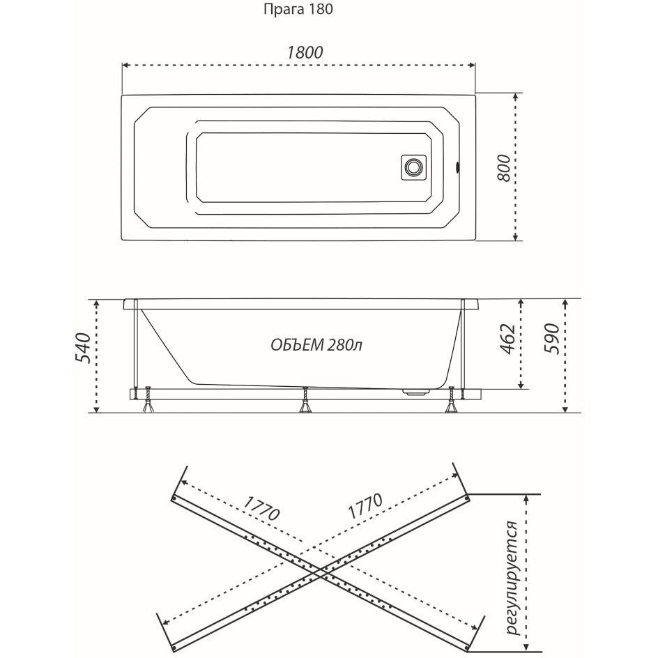 Ванна прямоугольная Тритон (Triton) акриловая Прага 1800х800х590 мм (Щ0000049119) , (без монтажного комплекта/ножек)