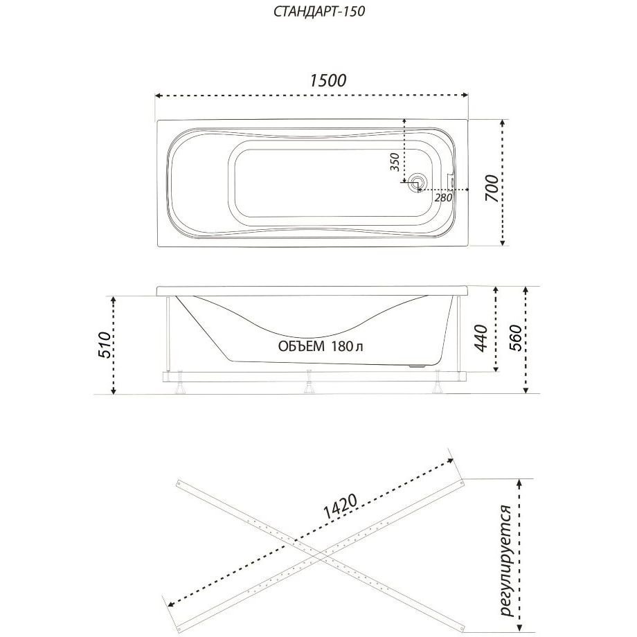 Ванна прямоугольная Тритон (Triton) акриловая Стандарт 1500х700х560 мм (Н0000099328) , (без монтажного комплекта/ножек)