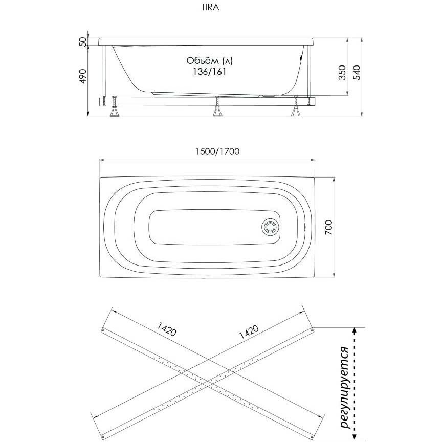 Ванна прямоугольная Тритон (Triton) акриловая Тира 1700х700х540 мм (Щ0000016669) (без монтажного комплекта/ножек)