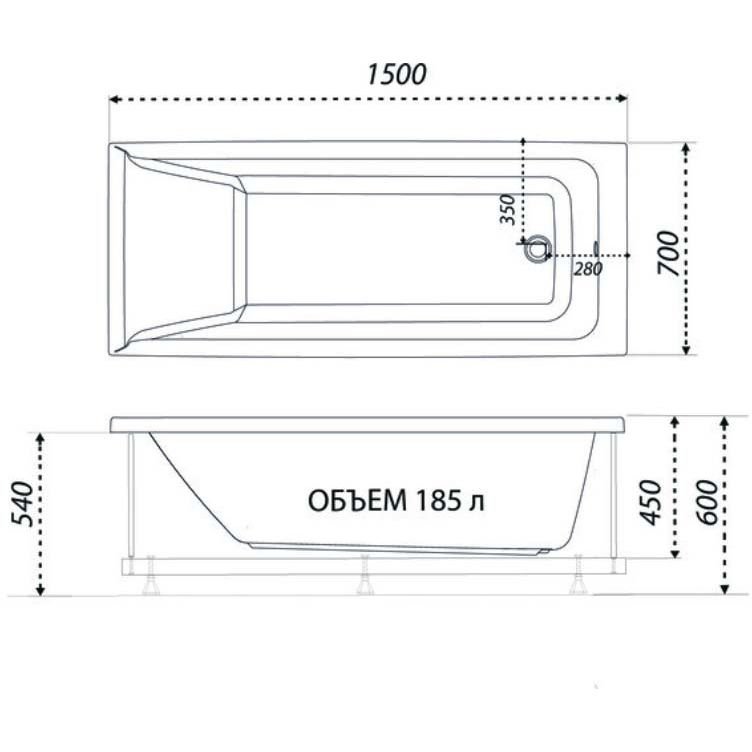 Ванна прямоугольная Тритон (Triton) акриловая Tori 1500х700х600 мм (Щ0000042930) (без монтажного комплекта/ножек)