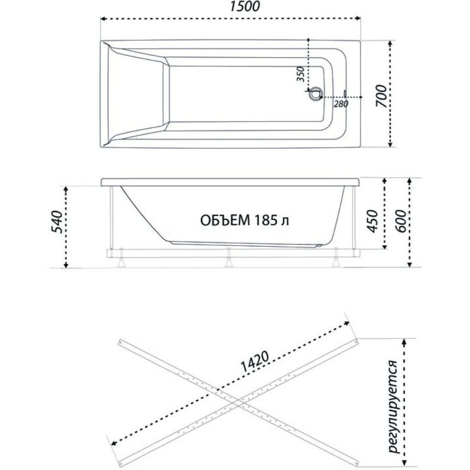 Ванна прямоугольная Тритон (Triton) акриловая Tori 1500х700х600 мм (Щ0000044549) (на Х-каркасе)