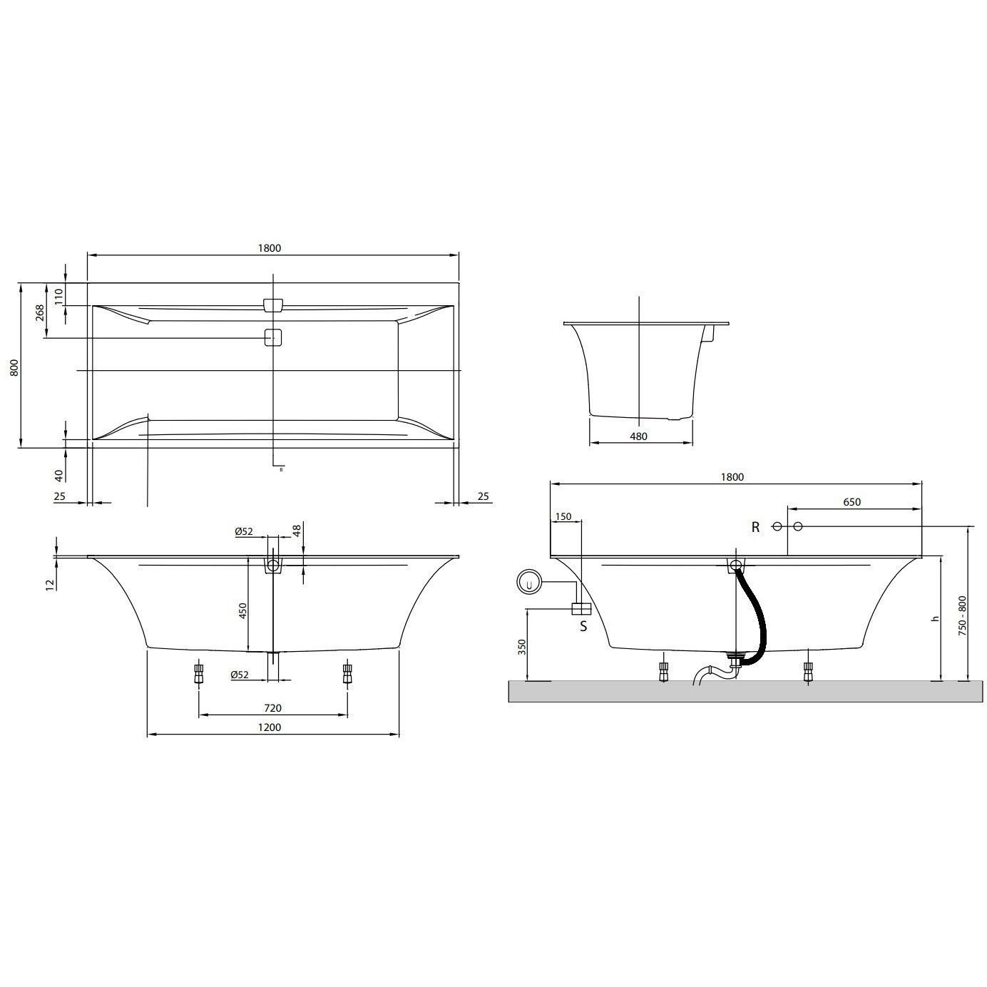 - Максимальный комфорт во время принятия ванны благодаря вытянутой округлой форме