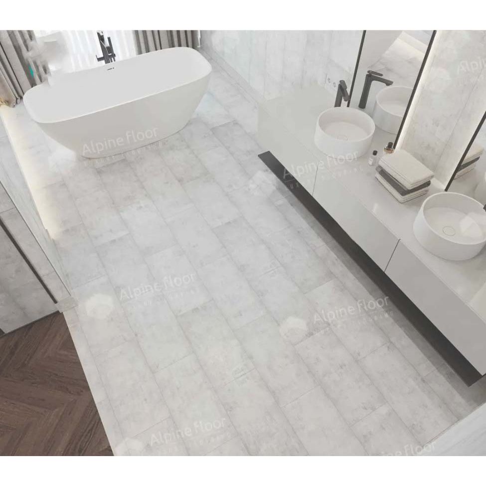 Клеевые кварц-виниловые полы Alpine Floor Light Stone можно использовать с системами подогрева пола, максимальная температура нагрева не более +27C. Материал на 100% водостойкий поэтому широко применяется во влажных помещениях, в том числе в ванных комнатах, кухнях, раздевалка бань и вокруг бассейнов. Декоры в коллекции LVT Light Stone имитируют плитку и камень.