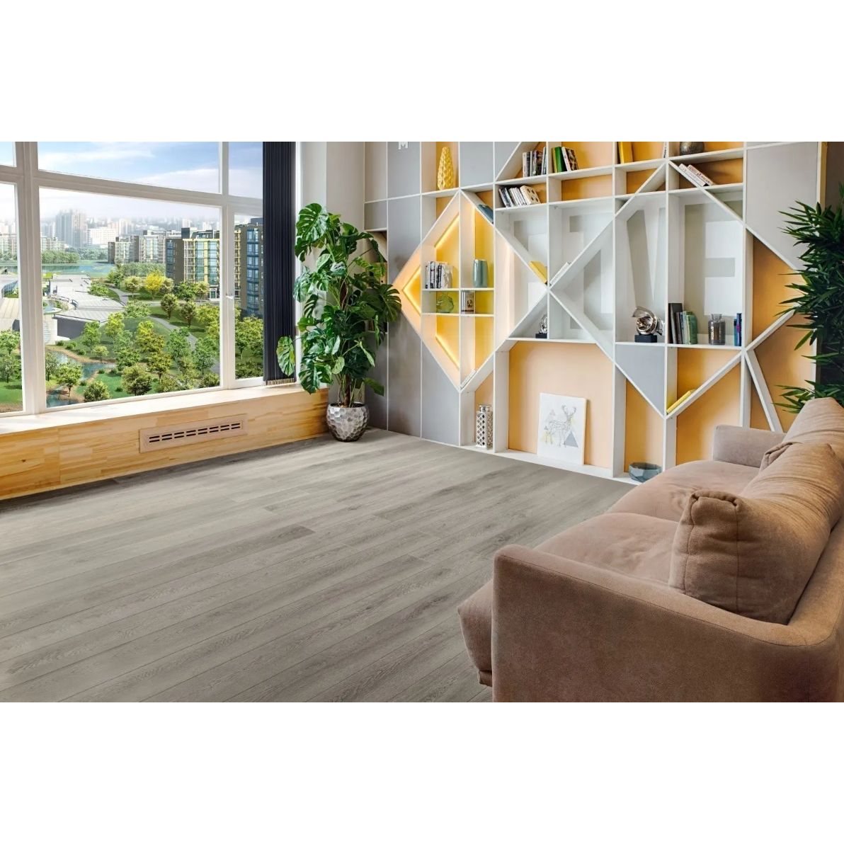 Особенность коллекции виниловой SPC плитки Grand Sequioia Superior ABA – толщина 8 мм с учетом встроенной подложки ISOFIX. V-образная выраженная фаска подчеркивает оригинальность каждой доски. Обычно в виниловых полах фаска срезается только с верхнего прозрачного защитного покрытия толщиной 0,3-0,5 мм, она видна только под углом со скользящим освещением и не похожа на классический крупный паркет. В SPC ламинате Alpine Floor Grand Sequioia Superior фаска же более фактурная, глубокая, а также подчеркивается в большинстве декоров контрастным цветом. Снизу встроена специальная шумопоглощающая подложка Isofix на основе IXPE-пены. Виниловый пол Alpine Floor Grand Sequioia Superior укладывается только бесклеевым способом без подложек.