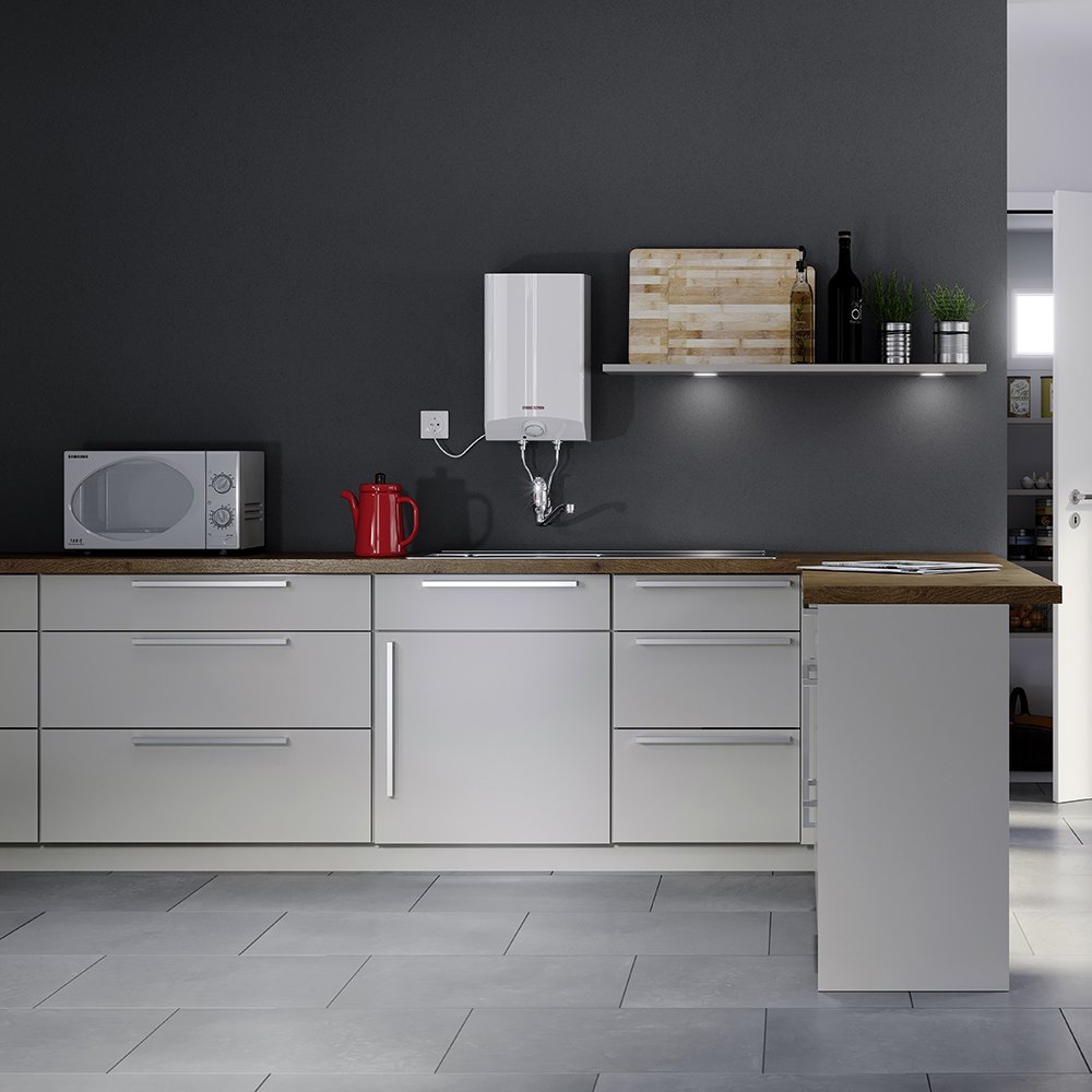 ESH 10 O-P Plus представляет собой водонагреватель накопительного типа с небольшим по объему баком на 10 литров, но этого достаточно для снабжения одной или нескольких водоразборных точек горячей водой. Данная модель относится к напорному оборудованию, а значит напрямую подключается к водопроводной магистрали, выдерживая давление сети, и совместимо с большинством напорных смесителей.