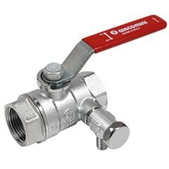 Кран шаровой, Giacomini (Джакомини) , R250DS, стандартный проход, 1/2″, ВВ, ручка-рычаг красный, латунь, хромированный, со сливом R250SX003
