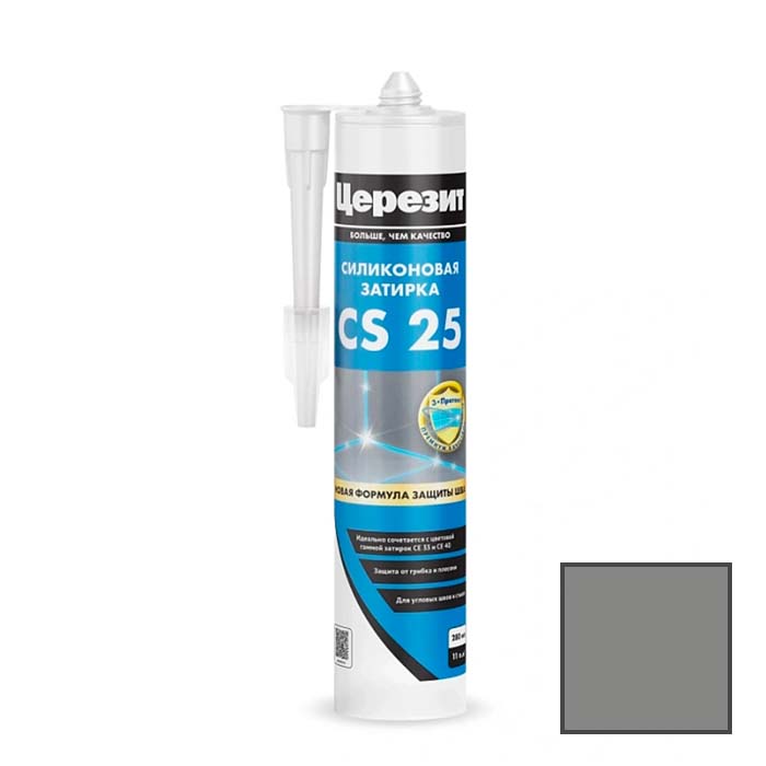 Цветная затирка с усиленным противогрибковым эффектом для герметизации угловых швов и стыковСиликоновая затирка CS 25 предназначена для герметизации угловых, деформационных и примыкающих к санитарно-техническому оборудованию (ваннам, раковинам и др.) швов плиточных облицовок в помещениях с повышенной влажностью: ванных комнатах, душевых, кухнях, туалетах и т.д. Обладает высокой адгезией к эмалированным поверхностям, стеклу, фарфору и фаянсу.